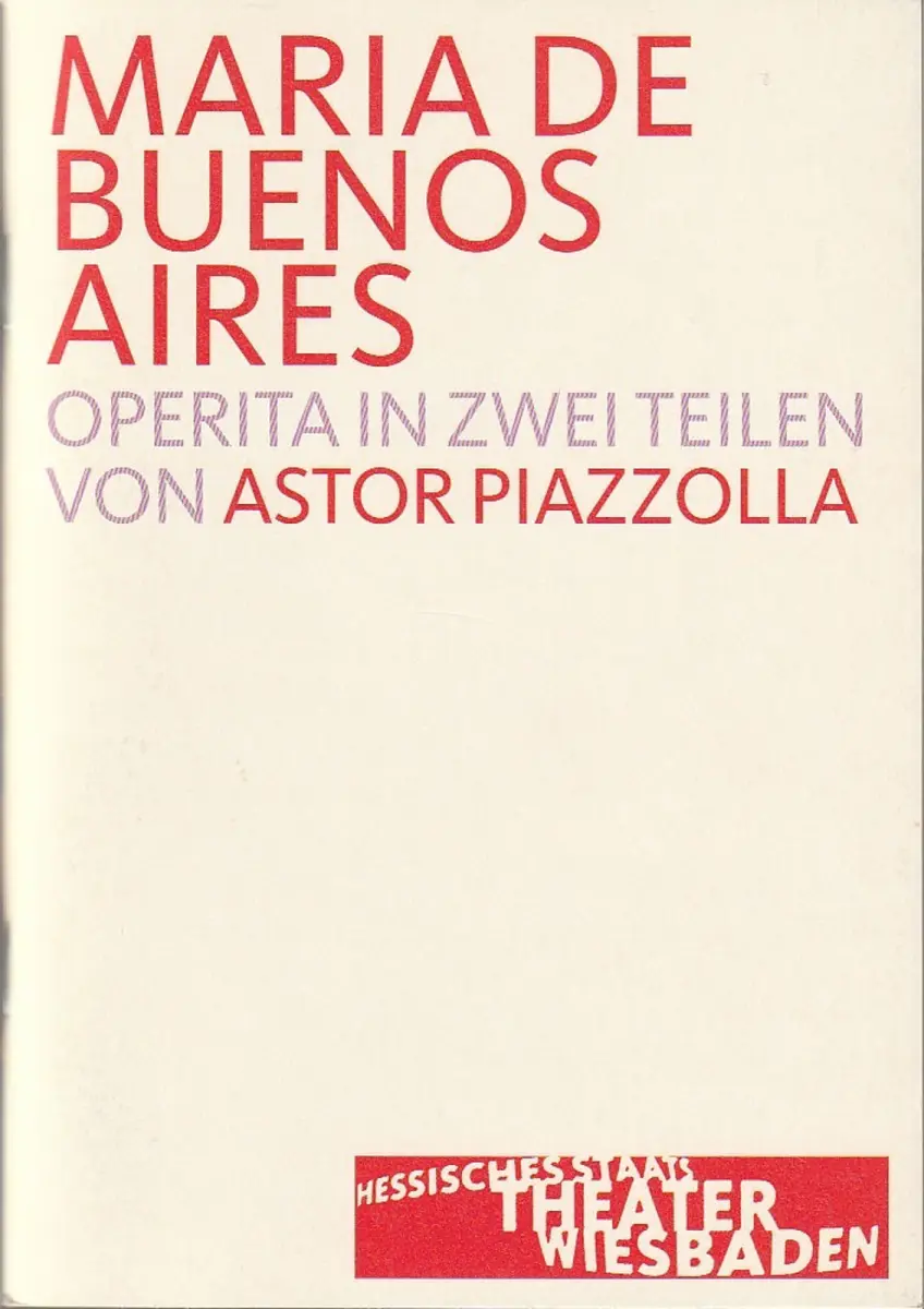 Hessisches Staatstheater Wiesbaden, Manfred Beilharz, Bodo Busse, Christian Schröder: Programmheft Astor Piazzolla MARIA DE BUENOS AIRES Premiere 15. November 2003 Spielzeit 2003 / 04.