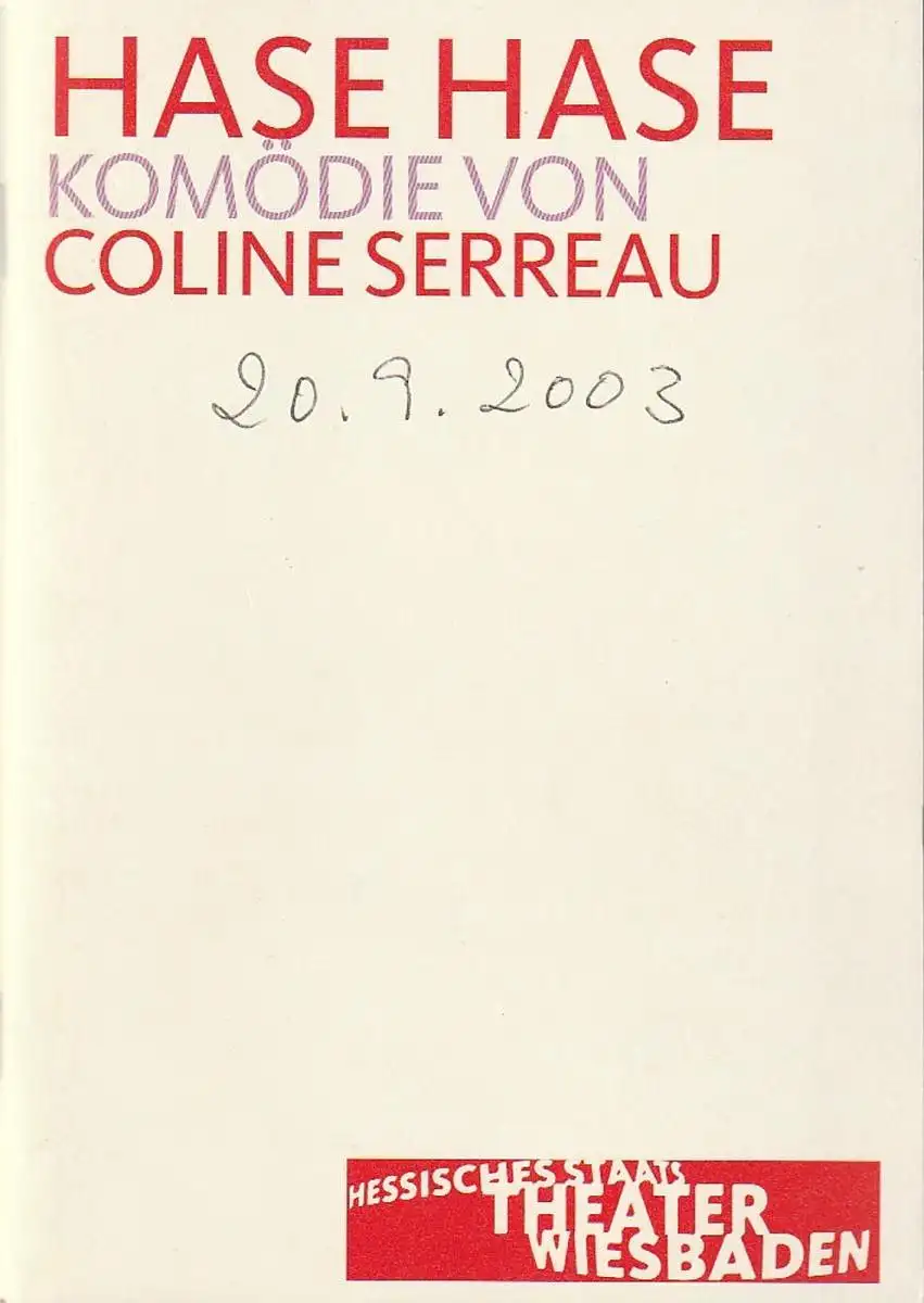 Titel: Programmheft Coline Serreau HASE HASE Premiere 20. September 2003 Kleines Haus
