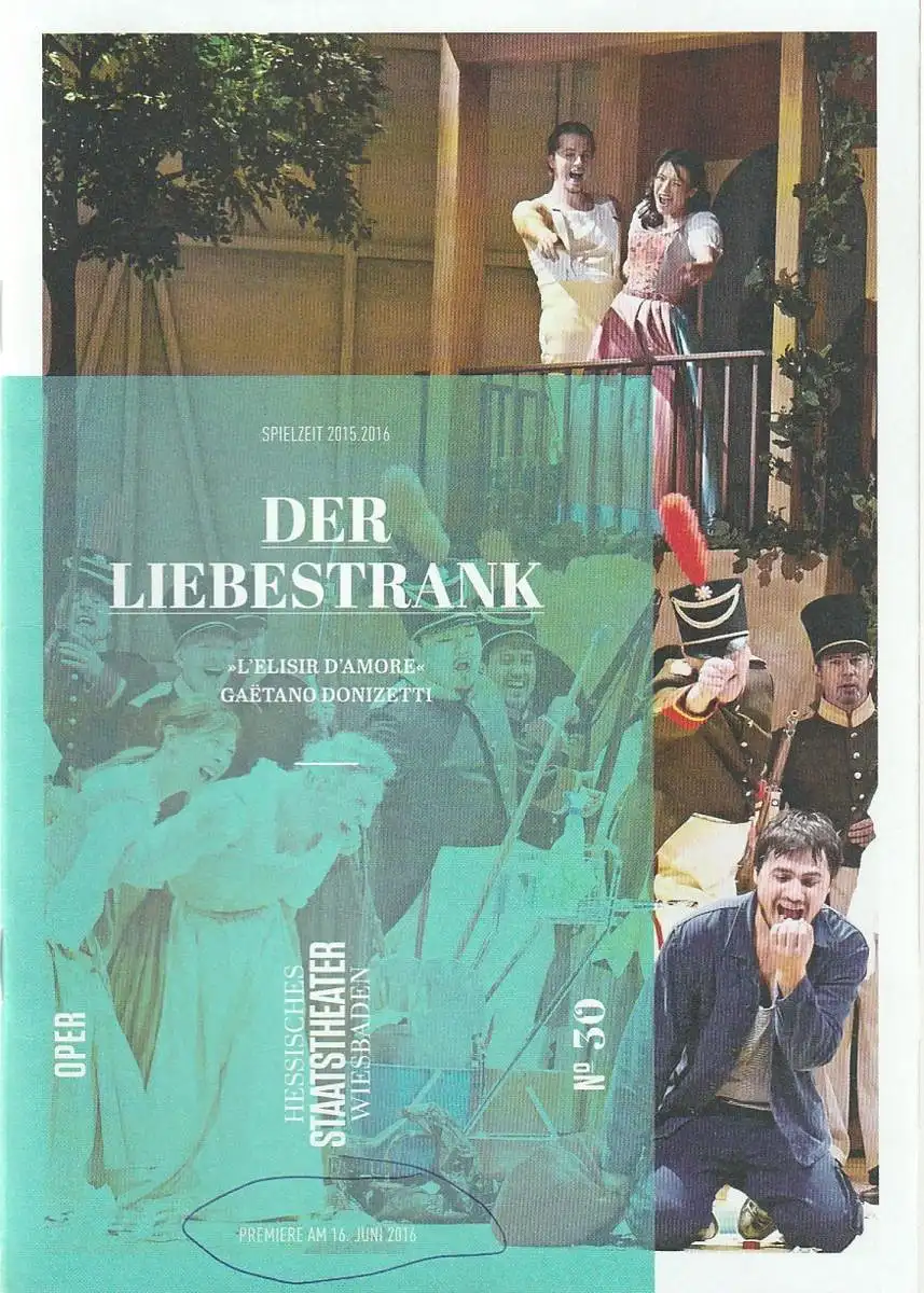 Hessisches Staatstheater Wiesbaden, Uwe Eric Laufenberg, formdusche, Regina Palmai: Programmheft Gaetano Donizetti DER LIEBESTRANK Premiere 16. Juni 2016 Spielzeit 2015 / 2016 Heft 30.