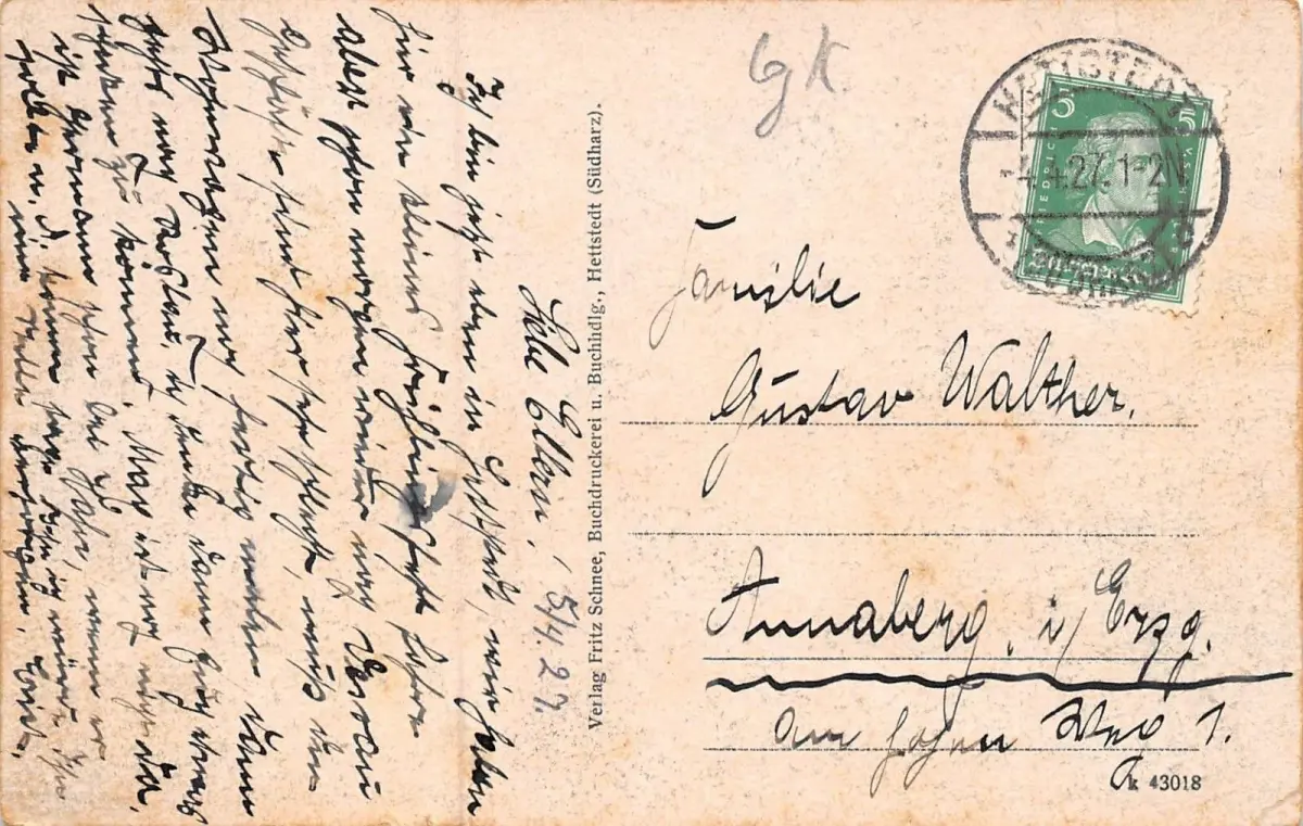 Rückseite: gelaufen von Hettstedt (Südharz)