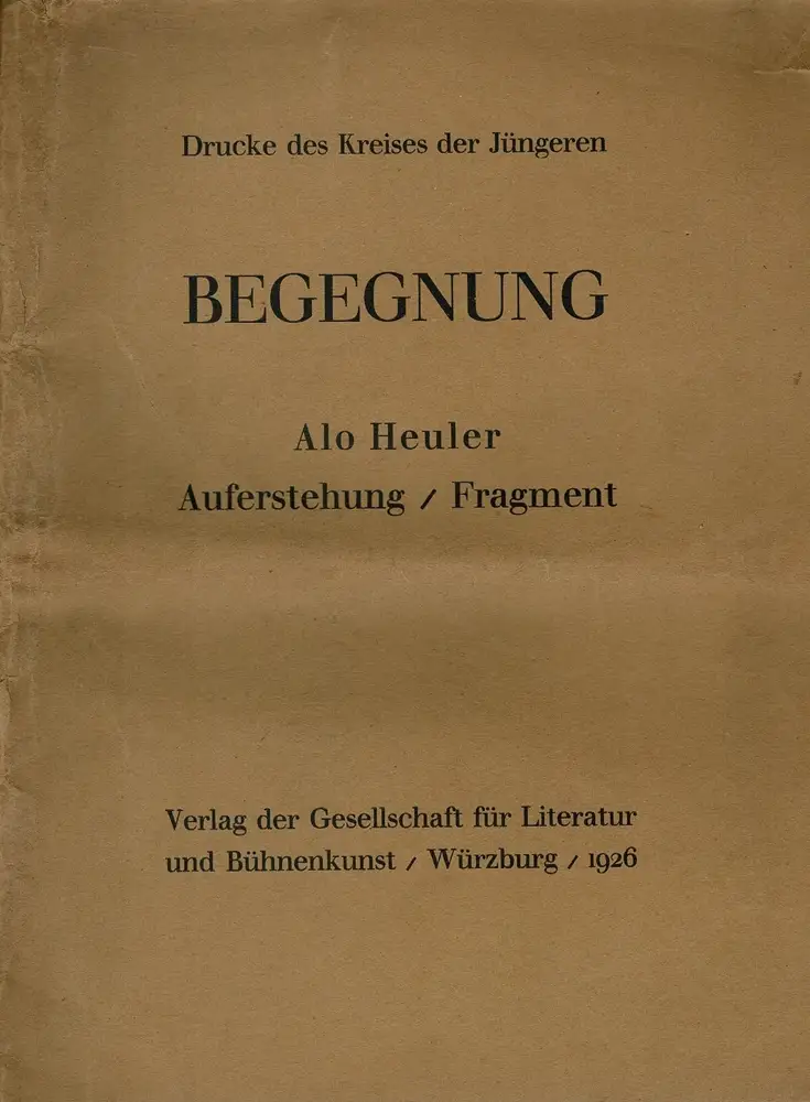 Würzburg, Verlag der Gesellschaft fürLiteratur u. Bühnenkunst, 1926, 19 S. (= Begegnung. Drucke des Kreises der Jüngeren). 4to. 28,5 cm. OBrosch.