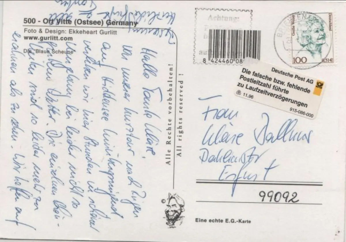 Ich hatte die Rechnung sofort als Vorkasse bezahlt, aber keine Zusendung der Karte erhalten. Trotz Nachfrage keine Rückmeldung bzw. Erklärung. Da es sich zum Glück nur um 1,70 € handelt, ist die Sache für mich erledigt, ärgerlich, aber zu verkraften. Mit den drei anderen Karten, die ich bestellt hatte, hat alles wunderbar geklappt.