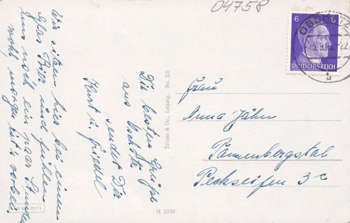 Rückseite: gelaufen 1942