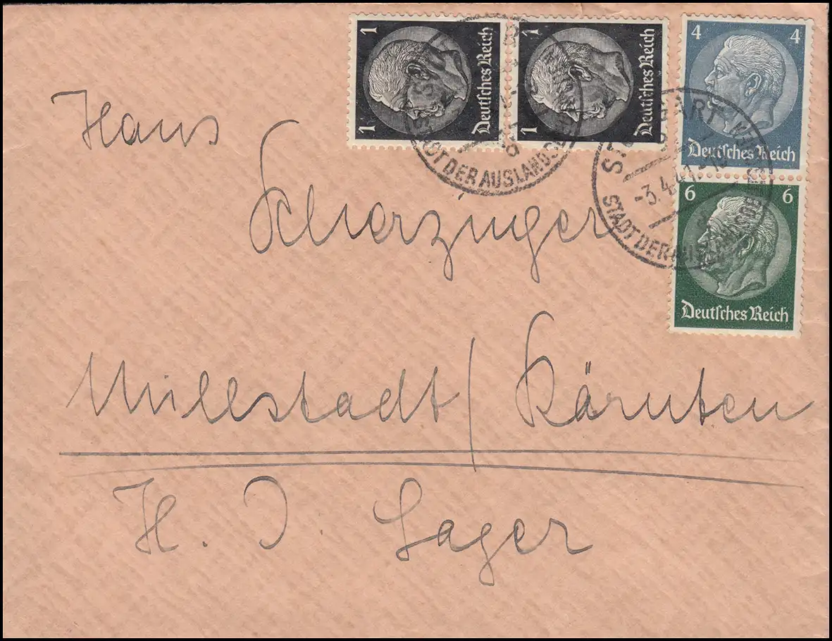Hindenburg-Zusammendruck S 215 mit 4+6 Pfennig MiF Brief STUTTGART 3.4.41