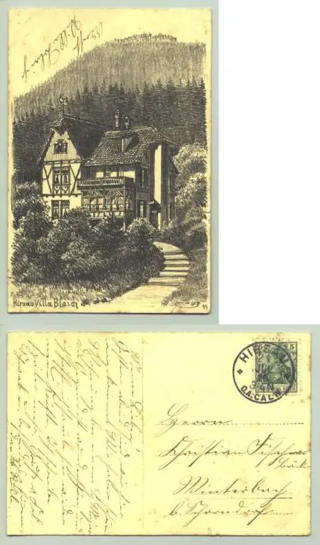 Hirsau 1910 (intern : 0081137) Artikelbeschreibung u. Zustand : Siehe Scan. Weitere Infos : Ansichtskarte. Hirsau Villa Blaich, bei Calw. PLZ-Bereich pauschal 75365. Postalisch gelaufen 1910