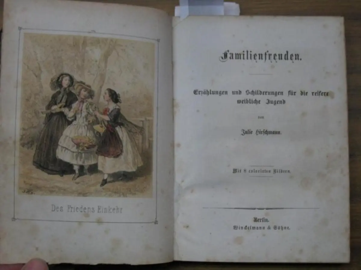 Hirschmann, Julie: Familienfreuden. Erzählungen und Schilderungen für die reifere weibliche Jugend: Eine Bürgerfamilie. Die einzige Tochter. Die Haussonne. Das Leben gleicht der Fahrt zur See. Des Friedens Einkehr. Nach zehn Jahren. Tante Lora's lieben Fr