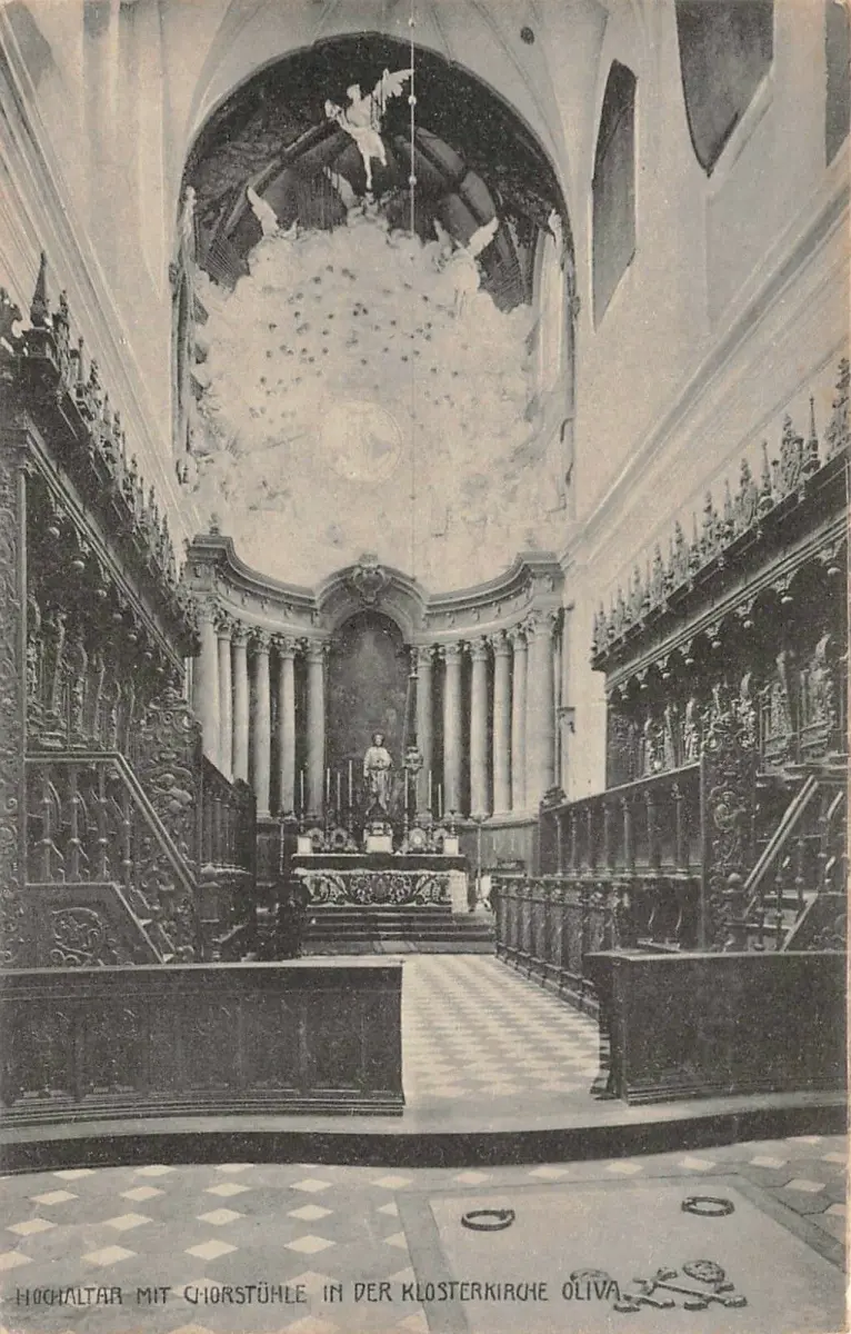 Hochaltar mit Chorstühle in der Klosterkirche Oliva Danzig Postkarte AK