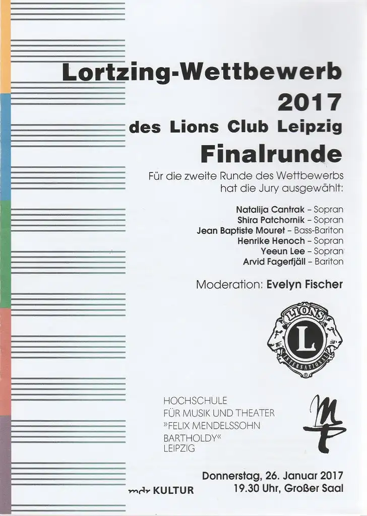 Titel: Programmheft LORTZING-WETTBEWERB 2017 DES LIONS CLUB LEIPZIG FINALRUNDE 26. Januar 2017 Großer Saal