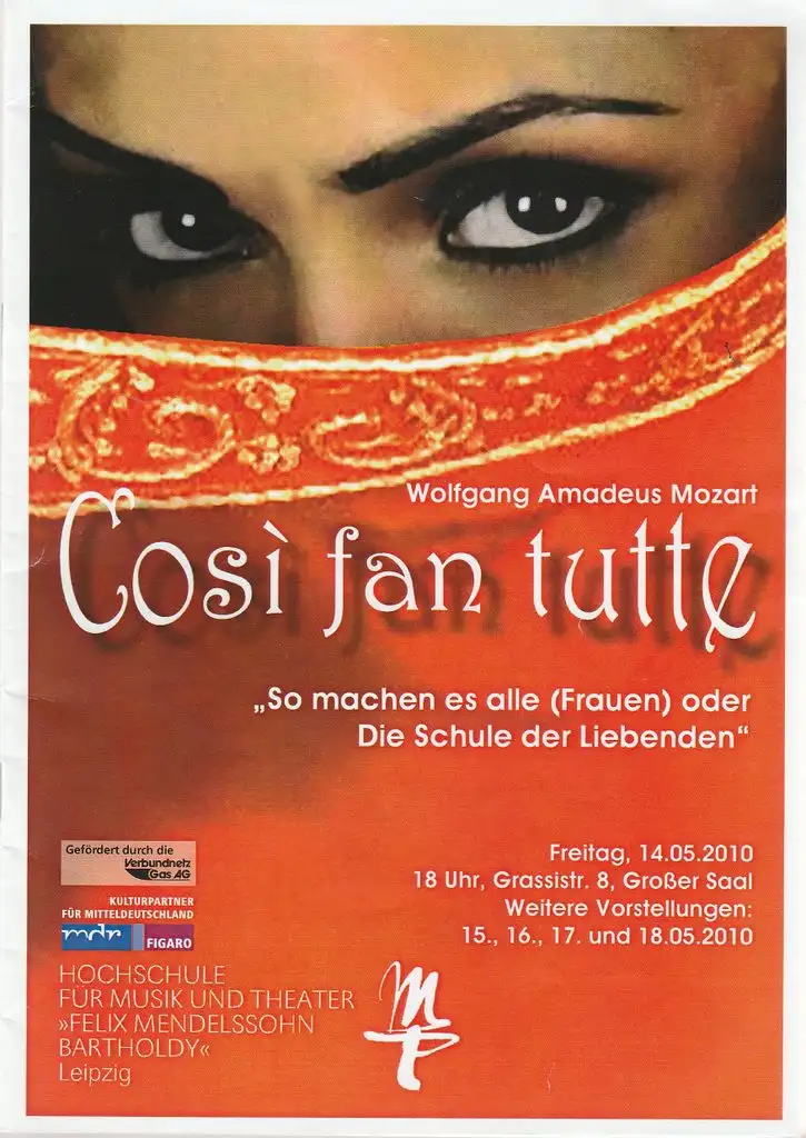 Hochschule für Musik und Theater Felix Mendelssohn-Bartholdy Leipzig, Robert Ehrlich, Stefan Keym, Stefan Schönknecht: Programmheft Wolfgang Amadeus Mozart COSI FAN TUTTE Premiere 14. und 15. Mai 2010 Großer Saal.