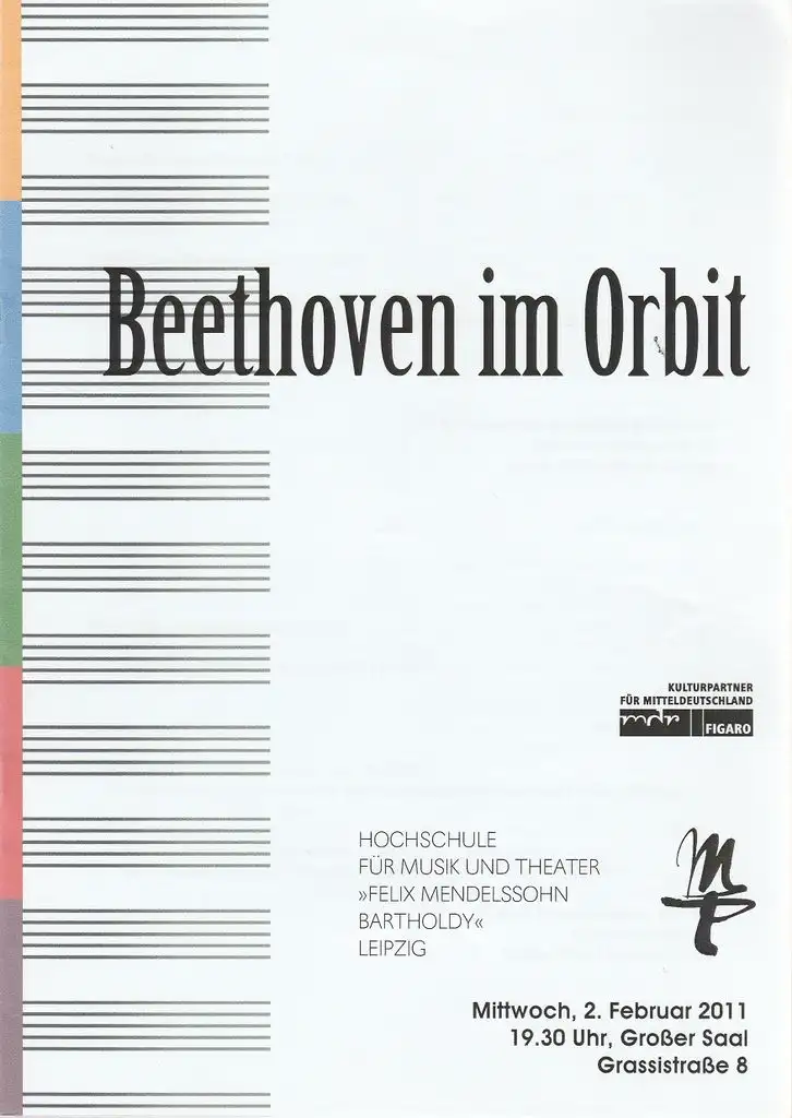 Hochschule für Musik und Theater Felix Mendelssohn-Bartholdy Leipzig, Robert Ehrlich, Stefan Schönknecht: Programmheft BEETHOVEN IM ORBIT 2. Februar 2011 Großer Saal.