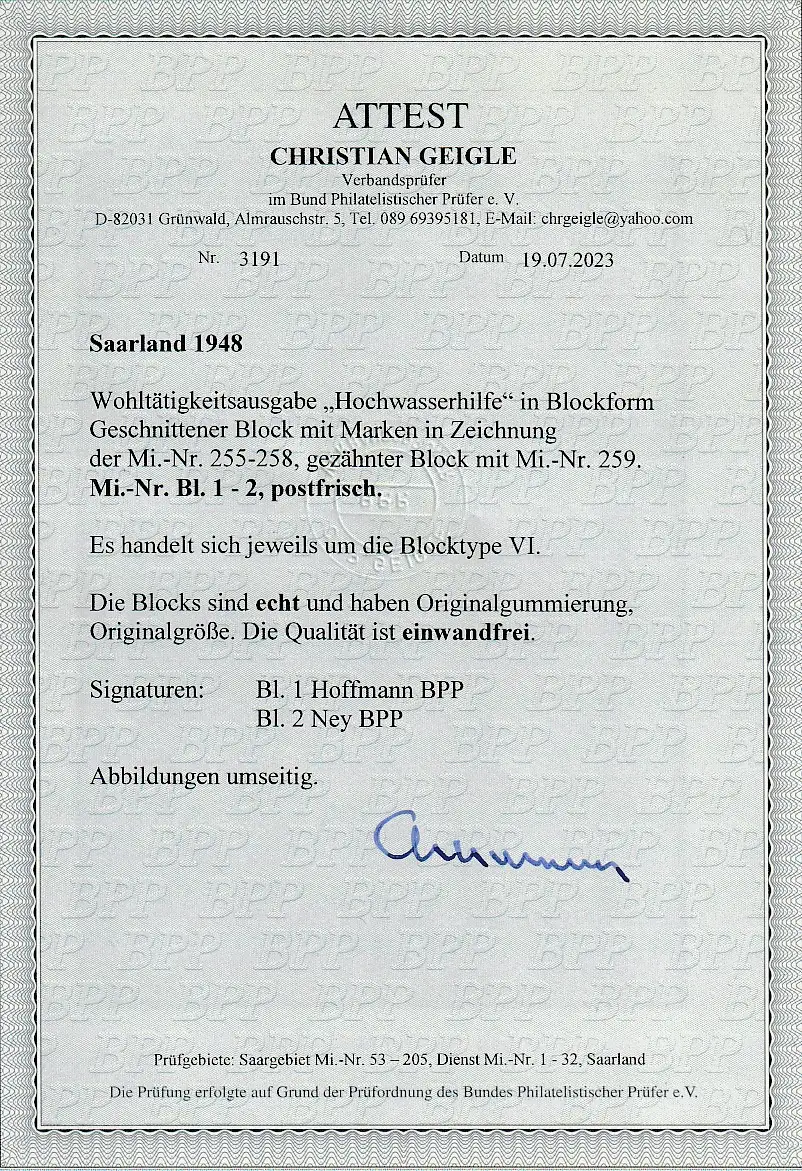 Hochwasserblockpaar, ** (MNH), Fotoattest Geigle "einwandfrei"