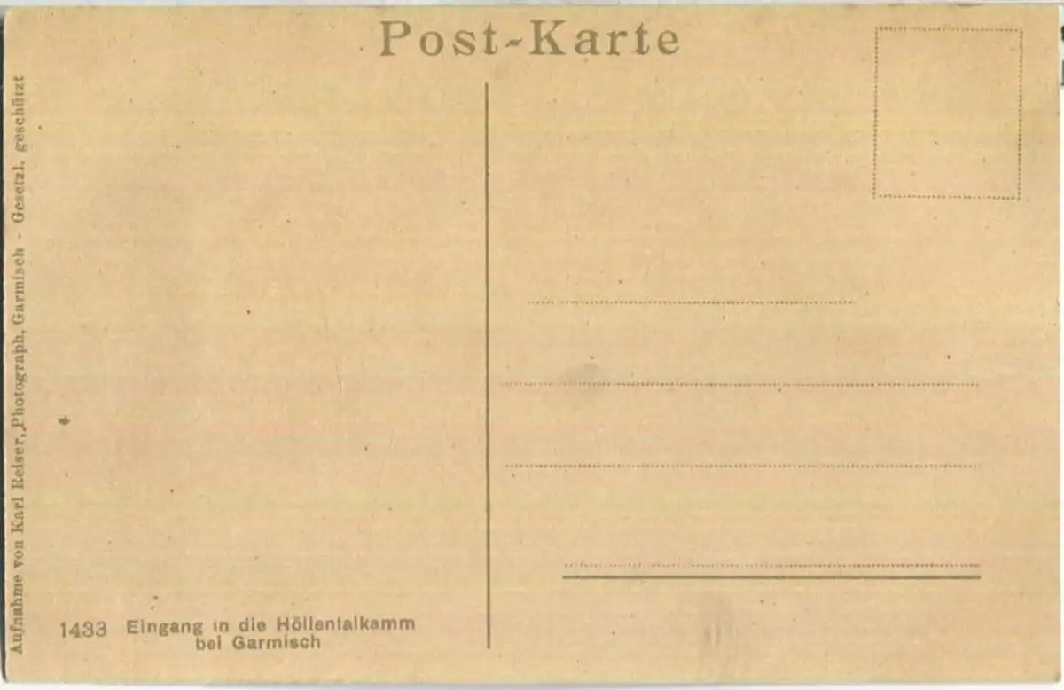 Höllentalklamm bei Garmisch - Eingang - AK ca. 1910 - Verlag Karl Reiser Garmisch