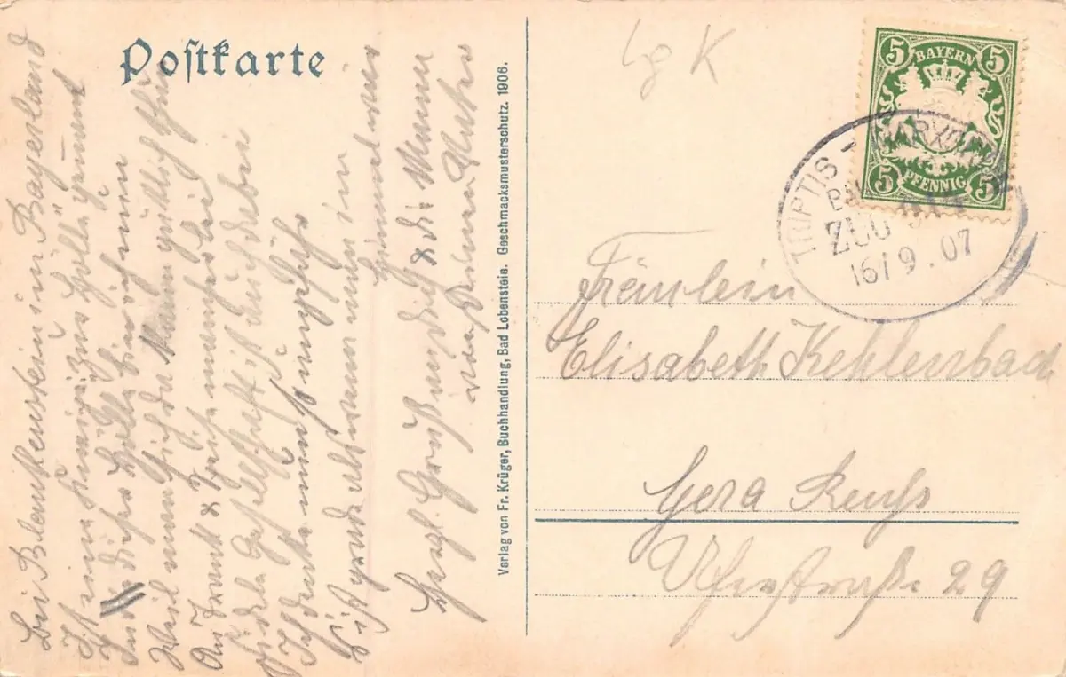 Rückseite: gelaufen 1907