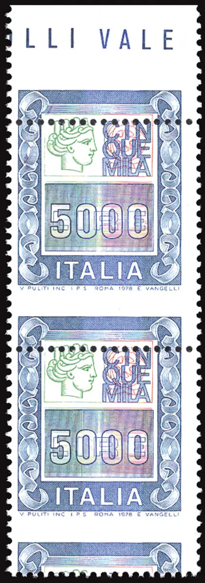 MNH - Vollgummi - - Hohe Werte Lire 5.000 Nr. 1442d Vertikaldrehmoment b. von oben mit stark nach unten verschobener Horizontalverzahnung - Selten Cod.700/182