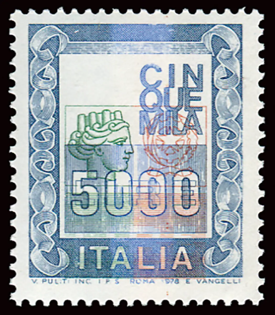 Hohe Werte Lire 5.000 Sorten verschobenes Zentrum Vollgummi MNH - Hohe Werte Lire 5.000 Nr. 1442c stark nach unten versetzter Mitteldruck - Kat. 150 Cod. 582/15