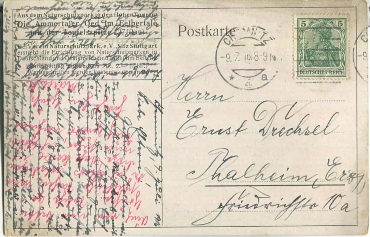 Hohen Tauren - Felbertal - Ammertaler Oed - Wild - Verein Naturschutzpark eV Stuttgart - Gebrauchsspuren (E41473) gel. 1916