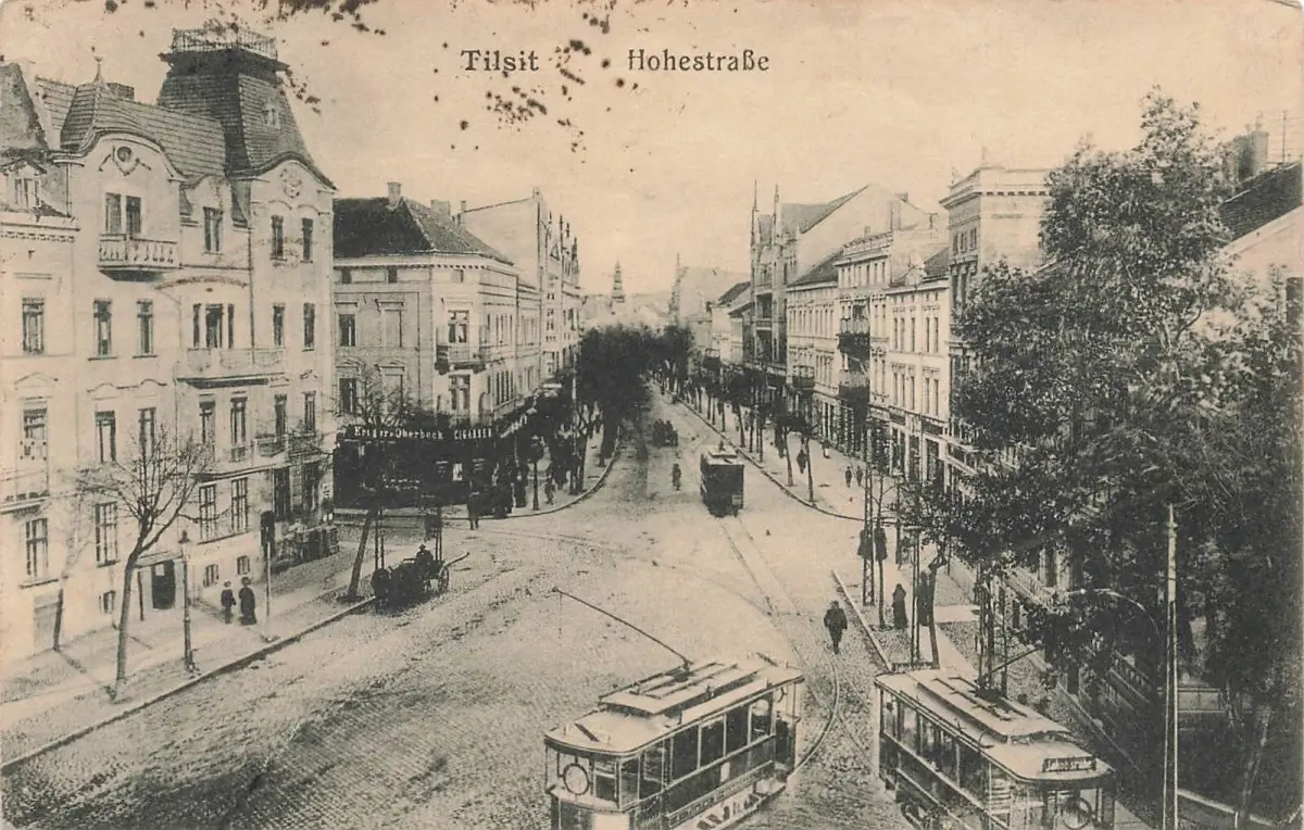 Hohestraße mit Straßenbahn in Tilsit Ostpreussen Postkarte AK 1919