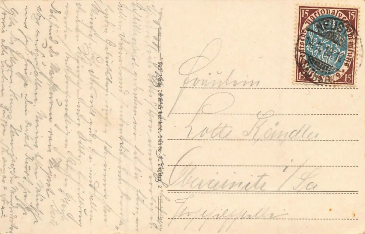 Rückseite: gelaufen 1919 von Neustadt (Sachsen)