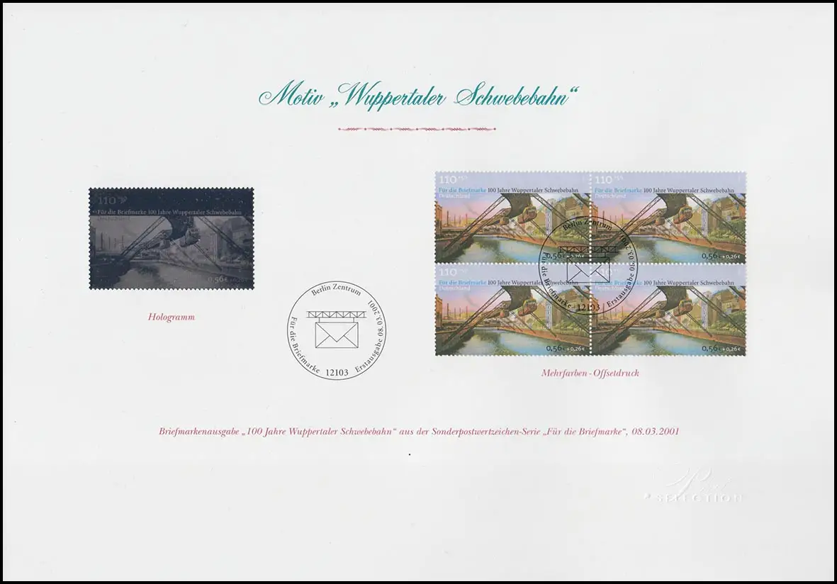 Hologramm Sonderdruck Wuppertaler Schwebebahn + Ausgabe Bund 2171 Viererblock