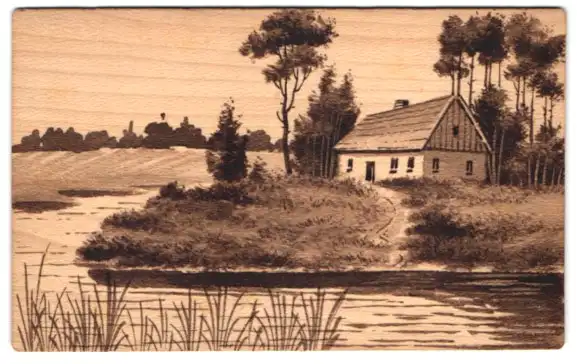 Holz-AK Ein einsames Hauss an einer Flussbiegung