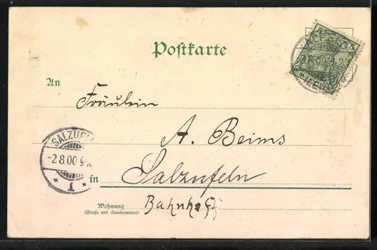 alte Ansichtskarte, gelaufen 1900, Bugspur re. oben, guter Zustand