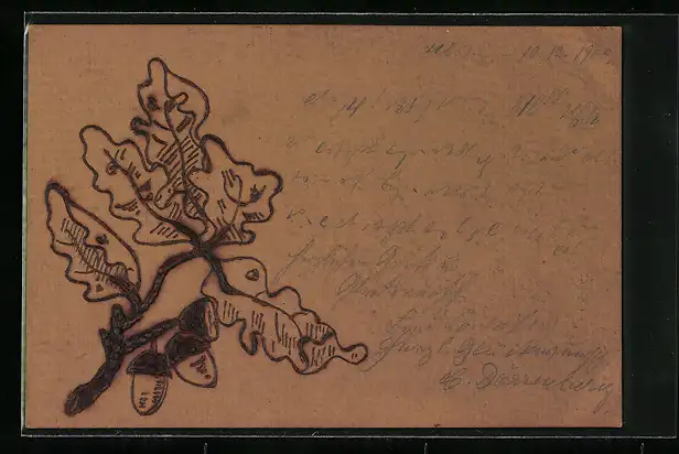 Holzbrand-Imitations-AK Zweig einer Traubeneiche