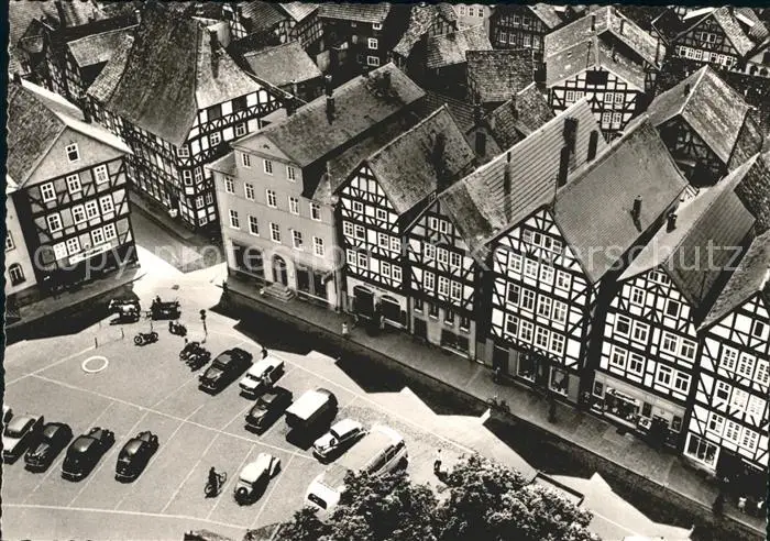 Homberg Efze Fachwerkhaeuser Marktplatz Fliegeraufnahme Homberg (Efze) postalisch gelaufen 1921-1965 Erhaltung siehe scans Alte Ansichtskarte Postkarte PaolPID1