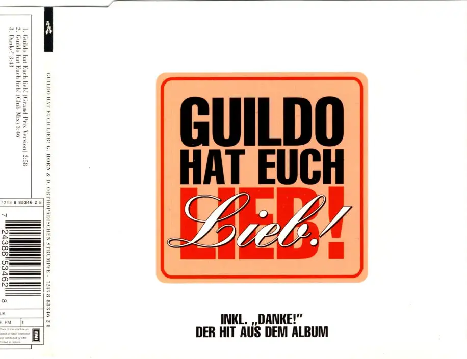 CD Single Guildo Horn - Guildo Hat Euch Lieb, Deutsche Beitrag zum Grand Pric D'Eurovison 1998, Zustand CD VG+ Hülle M-; Made in Netherlands 1987 Spin Records EMI 7243 8 85346 2, Tracks Grand Prix Vers. 2:58, Club Mix 3:43, Danke! 3:43