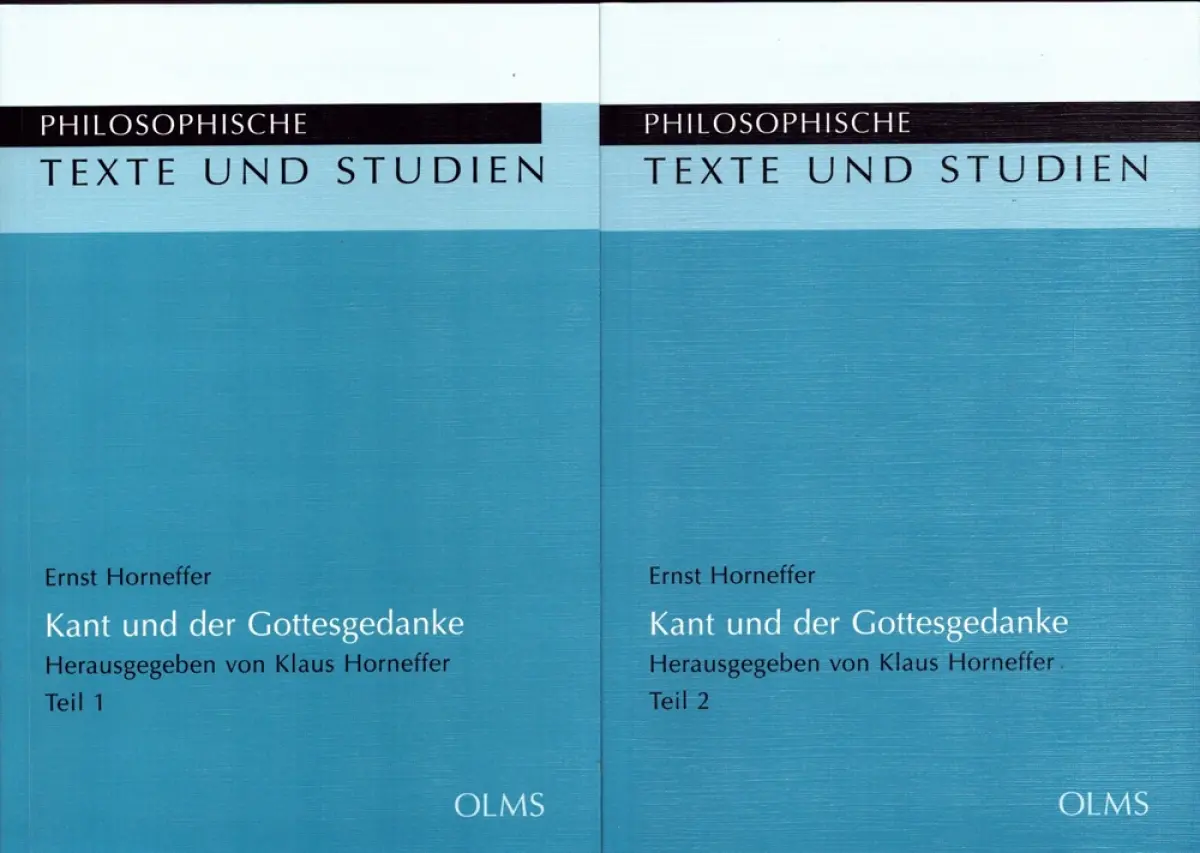 Horneffer, Ernst: Kant und der Gottesgedanke. Eine Interpretation. Hrsg. von Klaus Horneffer.Mit einem Vorwort von Thomas Mittmann. 2 Bde. (= komplett).
