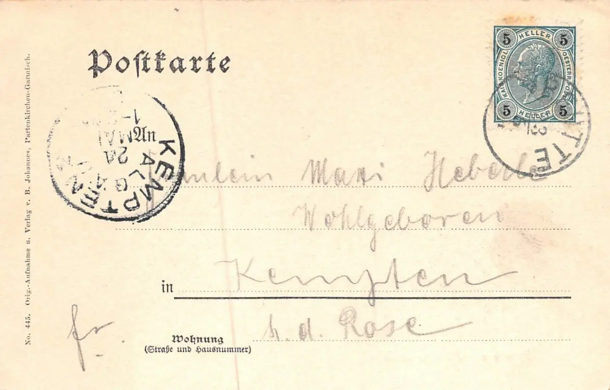 Rückseite: gelaufen nach Kempten (Algäu)