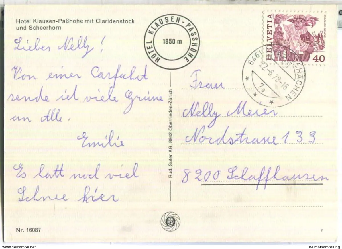 Hotel Klausen-Passhöhe mit Claridenstock und Scheerhorn - Postauto - Verlag Rud Suter AG Oberrieden (E88364) gel. 1978