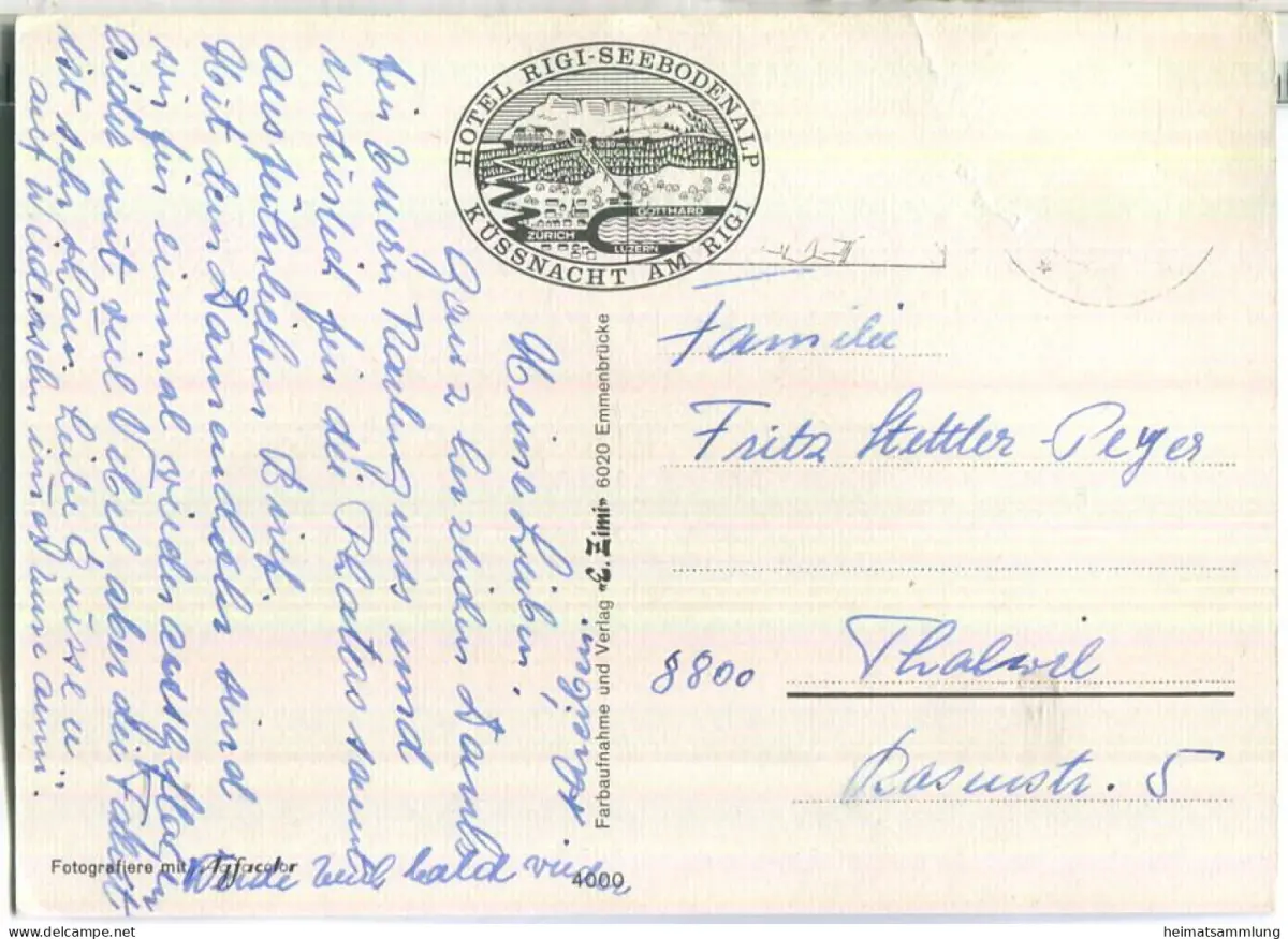 Hotel Rigi-Seebodenalp - Verlag E. Zimi Emmenbrücke - Marke entfernt - leichte Gebrauchsspuren (E88363) gel.