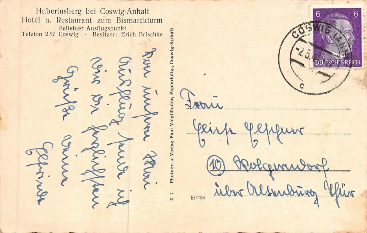 Rückseite: gelaufen 1944