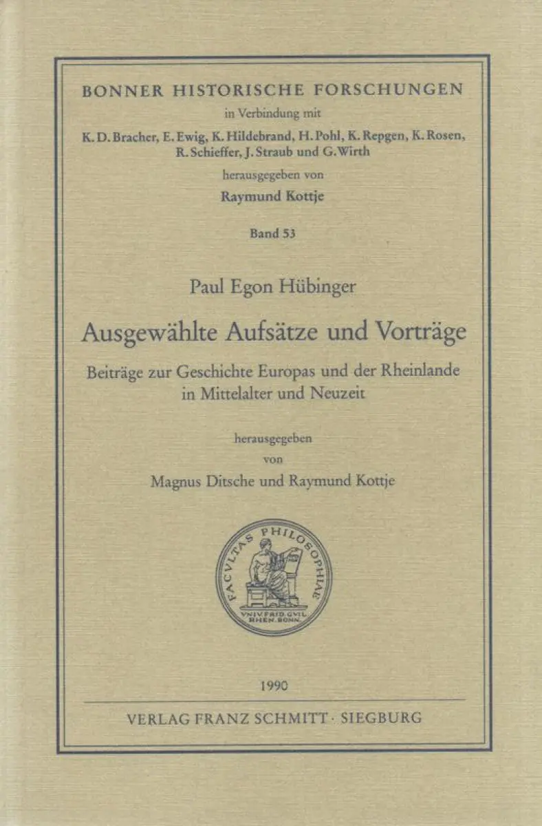 Hübinger, Paul Egon / Ditsche, Magnus: Ausgewählte Aufsätze und Vorträge: Beiträge zur Geschichte Europas und der Rheinlande in Mittelalter und Neuzeit. (Bonner historische Forschungen ; 53).
