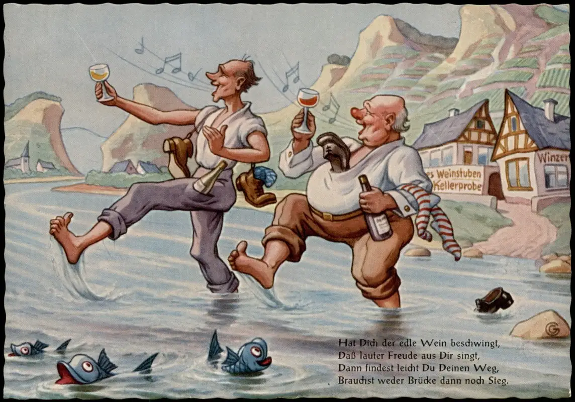 Humor Künstlerkarte "Fidel Zechbrüder" nach Zech-/Trink-Tour 1970