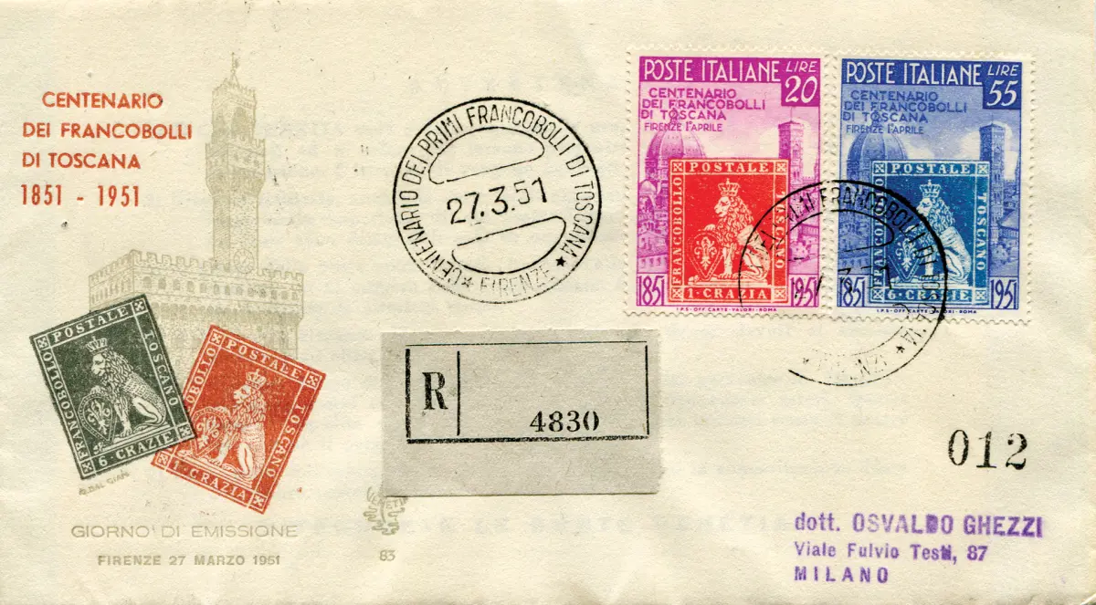 Hundertjahrfeier der Toskana auf Einschreiben Venedig Umschlag - Hundertjahrfeier der Toskana Nr. 653/654 Serie auf Einschreiben - Ungewöhnlich Cod. 354/15