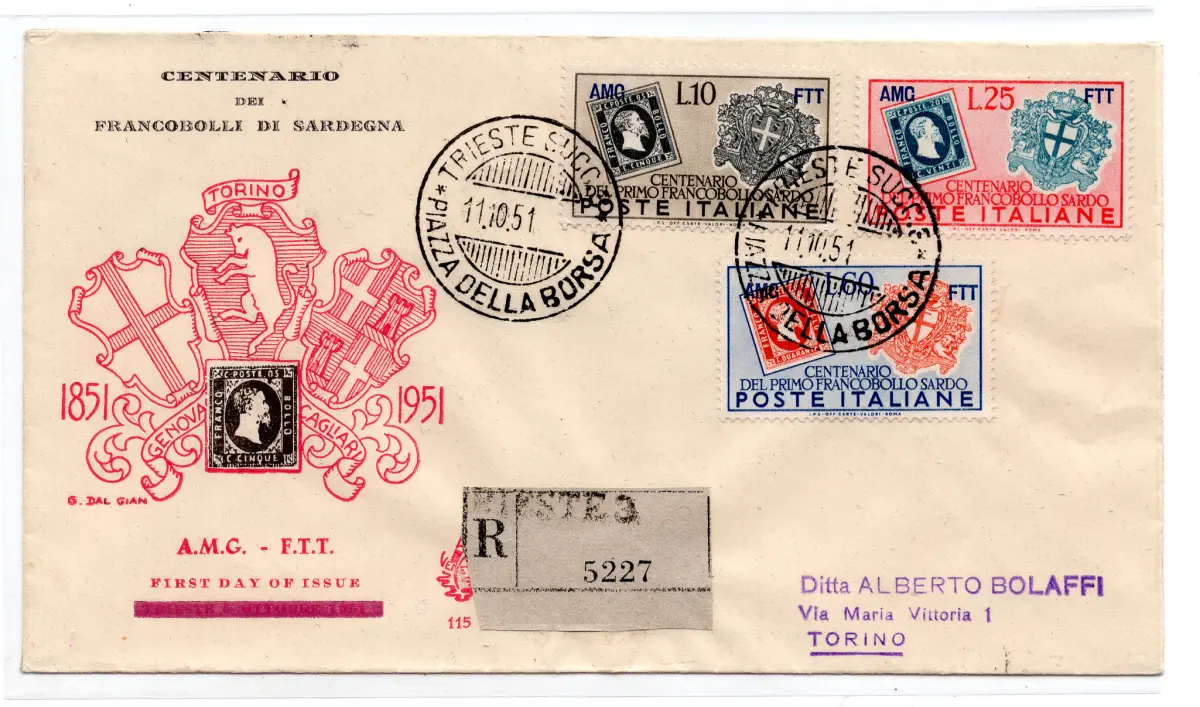 Umschlag - Hundertjahrfeier Sardiniens Nr. 130/132 Serie auf Umschlag Racc. für Mailand mit Anreise Cod. 564/17