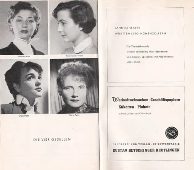 Huth, Jochen. Landestheater Württemberg-Hohenzollern- Intendant: Fritz Herterich (Hrsg.): Das Programm. Folge 18. Spielzeit 1953/54. Programmheft zu "Die vier Gesellen".