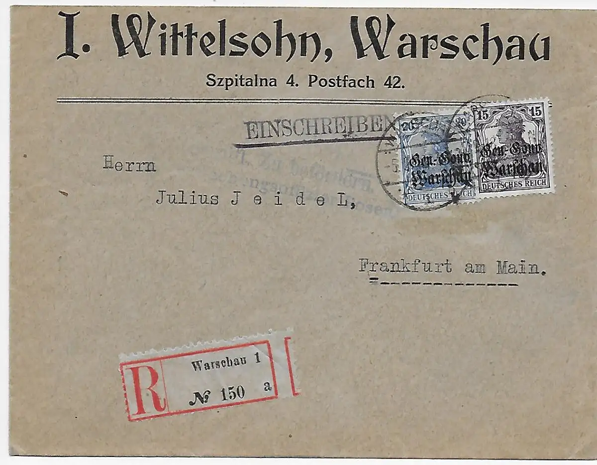 I. WK Polen: Einschreiben Warschau 1918 nach Frankfurt, Zensur