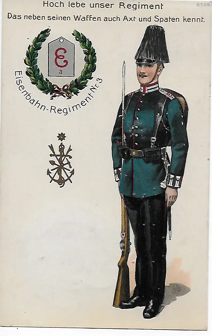 Für mehr Informationen siehe Scan: Ansichtskarte Regimentssoldate vom Eisenbahn Regiment Nr. 3, Blinde Treue