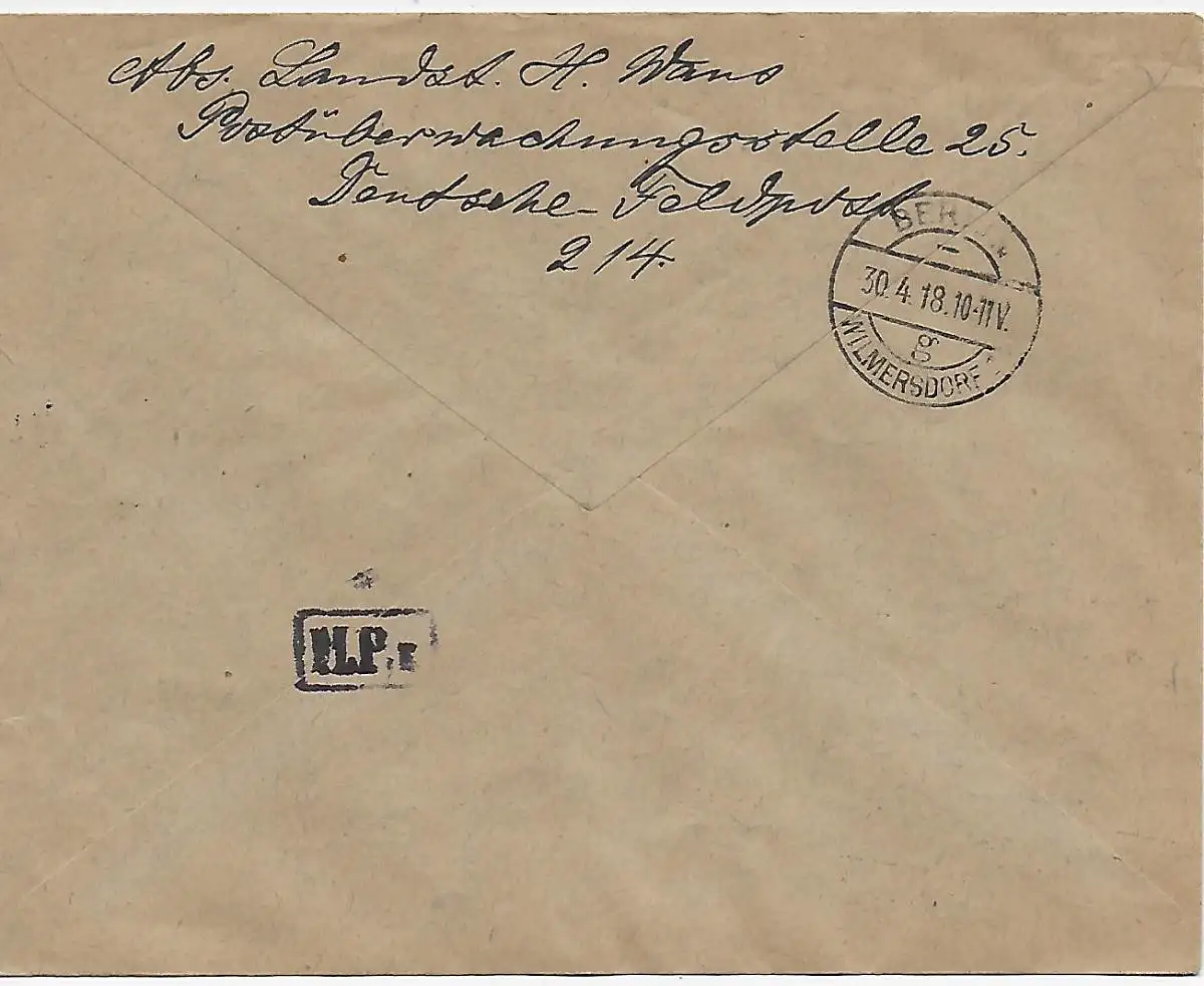 Für mehr Informationen siehe Scan: Absender: Postüberwachungsstelle 25 Deutsche Feldpost 214
