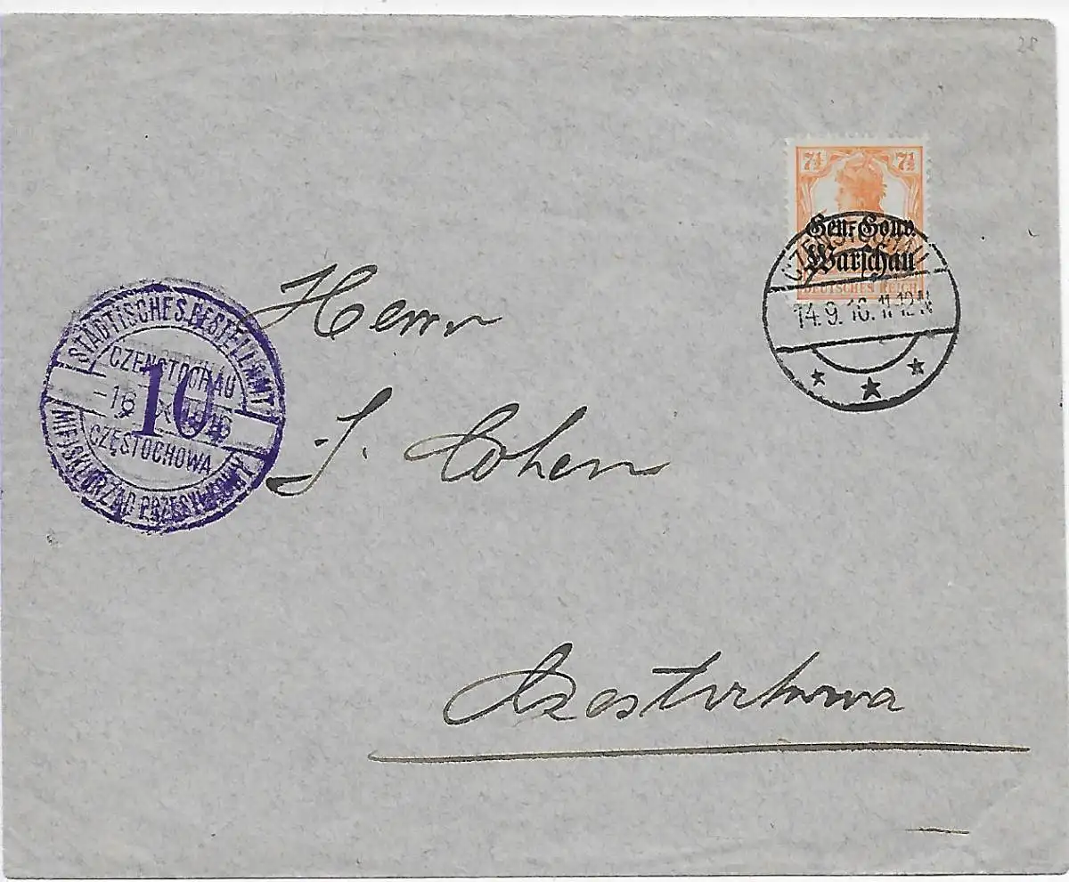 I. WK Polen: Städtisches Bestellamt, Tschenstochau 1916