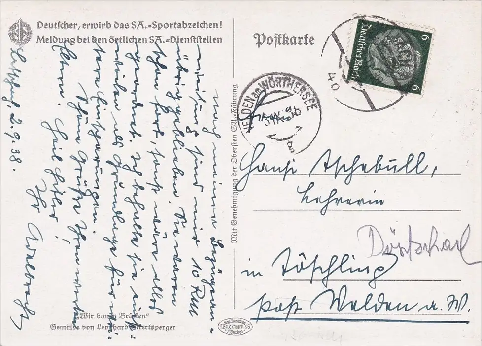 III. Reich: AK Deutscher erwirb das SA Sportabzeichen Villach/Weiden 1938