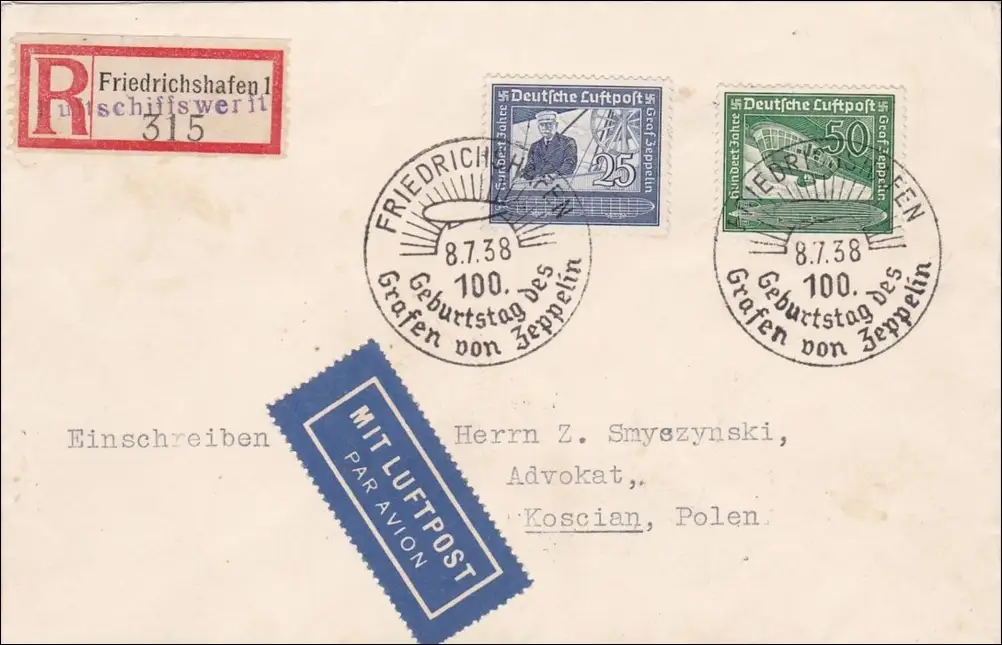 III. Reich: R-Zettel Luftschiffwerft Friedrichshafen, nach Polen 1938