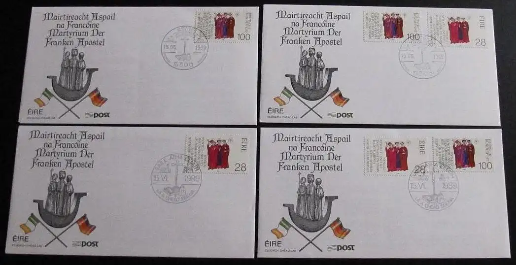IRLAND - DEUTSCHLAND 1989 Mi-Nr. 683 + 1424 auf 4 FDC