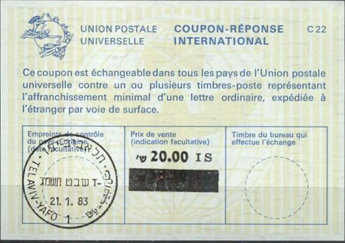 ISRAEL 1983 Nr. 137 IAS IRC CRI Int. Antwortschein 20.00 auf 18.10 IS