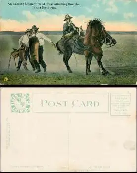 An Exciting Moment, Wild Horse attacking Broncheo, In the Northwest, farbig (Cowboys beim Rodeo)