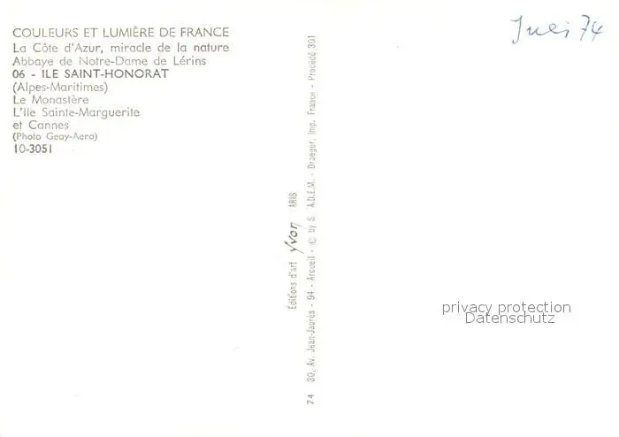 Ile_Saint-Honorat_Alpes_Maritimes Monastère Ile Sainte Marguerite et Cannes Cote d'Azur vue aérienne Ile_Saint-Honorat postalisch nicht gelaufen 1974 Erhaltung siehe scans [FriedD77] Frierer