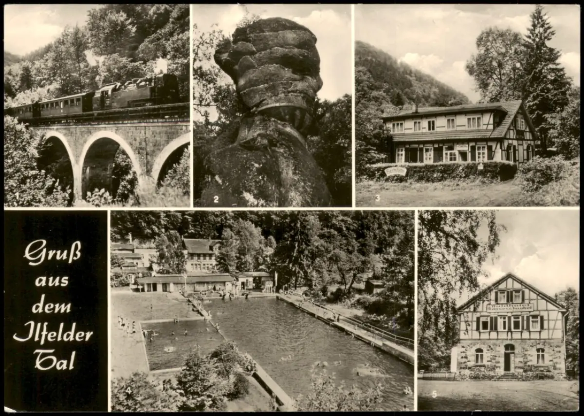 Name: Ilfelder Tal: 1 Harzquerbahn 2 Gänseschnabel 3 Gaststätte 4 Schwimmbad 5 Waldhotel