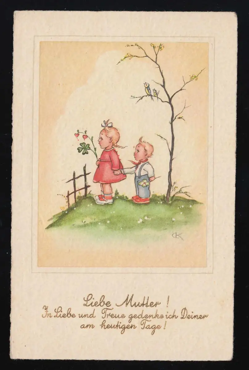 Illustration, Kinder Blumen sign. CK, Liebe Mutter! in Liebe Treue, ungebraucht